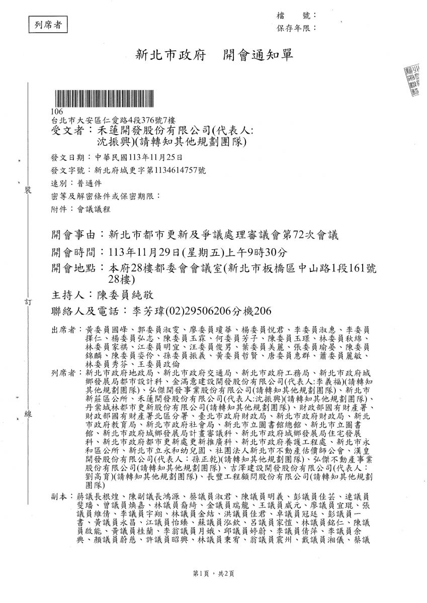 本案在全體住戶的支持、各專業顧問、技師團隊、新北住都中心及市府都更處的協助下,以100%同意且無爭議的狀況下,依法得以免辦聽證會,減少都更流程,最終於113/11/29正式通過新北市都市更新及爭議處理審議會的審議,從112/12/20正式送件報核到113/11/29通過大會審議,整個審議過程不到一年的時間,預計114年第二季可以拆屋完成,於第三季正式動工興建,預計118年第三季之後就可以完工交屋給住戶,讓大家可以住在全新、安全有品質的新大樓!!