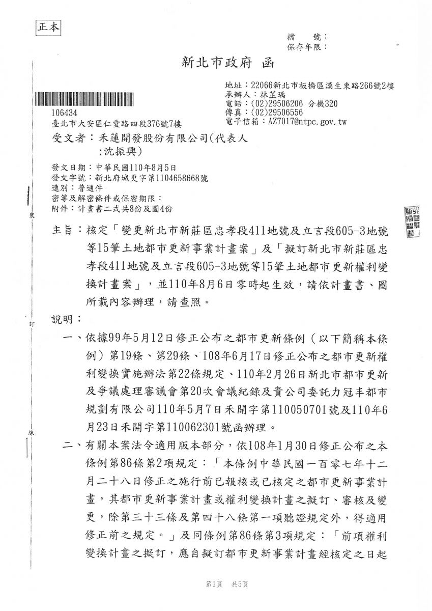 新莊區公園一路海砂屋都更案權利變換計畫核定正式公告實施!